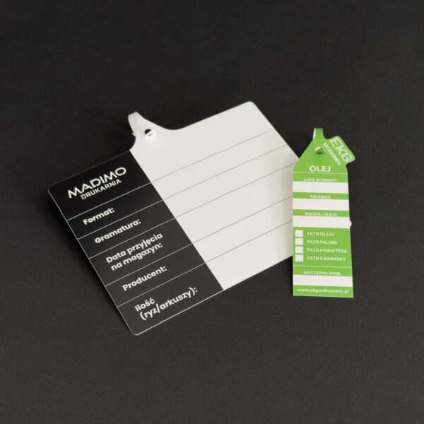 Oferujemy metki z papierów ozdobnych, kartonów technicznych, materiałów ekologicznych i syntetycznych. Możesz wybierać spośród różnych formatów, sposobów mocowania (dziurkowanie, sznureczki, wszywki), uszlachetnień (lakier, złocenie, tłoczenie), a także wdrażać personalizację zmiennych danych – np. nazw modeli, kolorów, rozmiarów czy kodów QR.